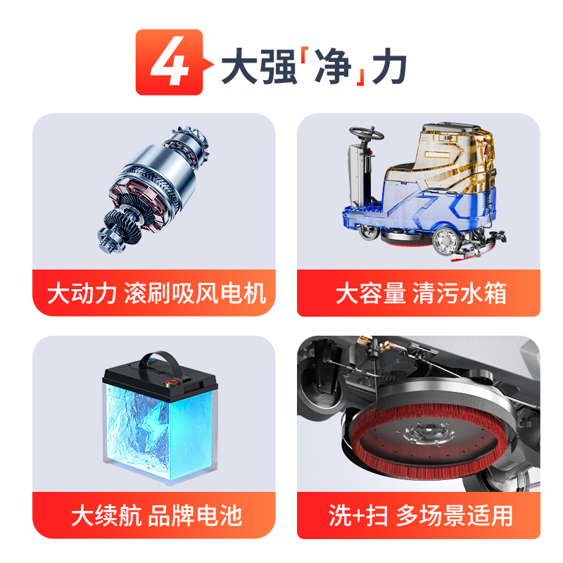 適用于工廠車間、商場超市、機場車站等大型硬質地面場所,能高效清潔油污、灰塵等頑固污漬
